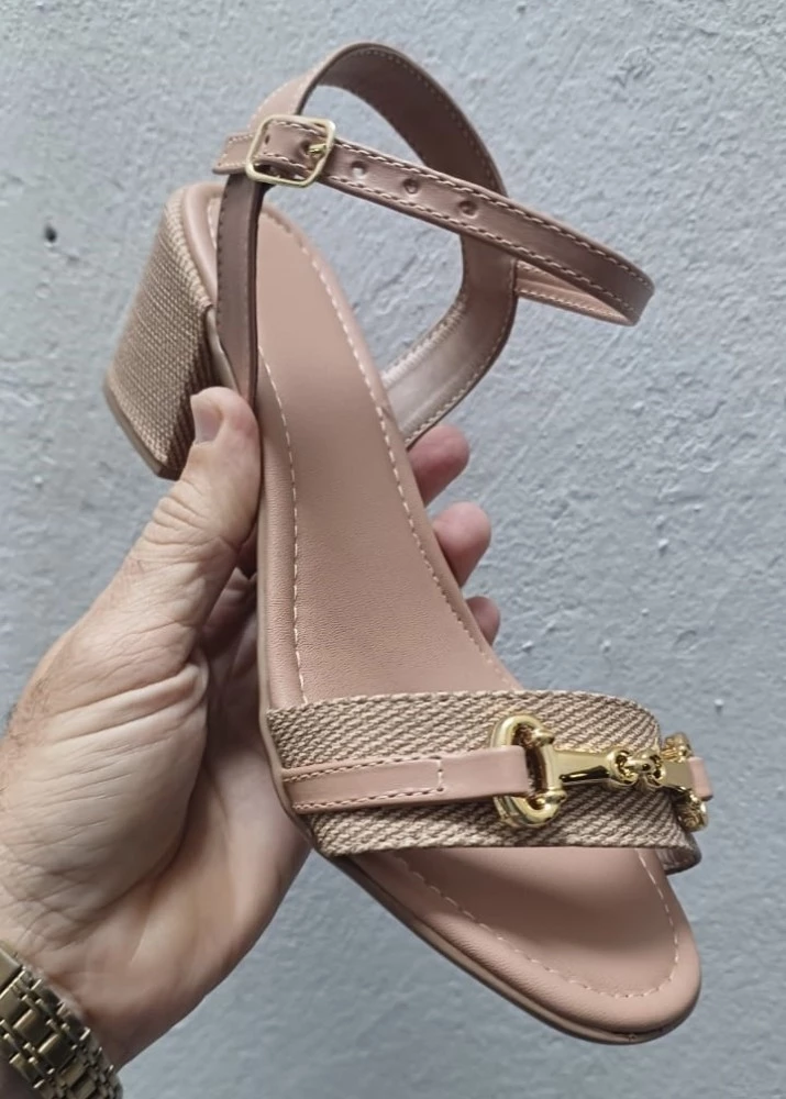 Ref 2365 pink Salto Bloco 7 cm Rob tira fina