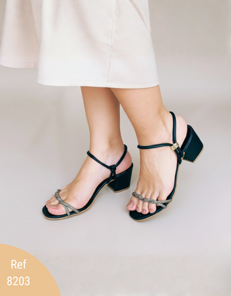 Ref. 9306 Rob preto salto prime 7 cm tira larga strass